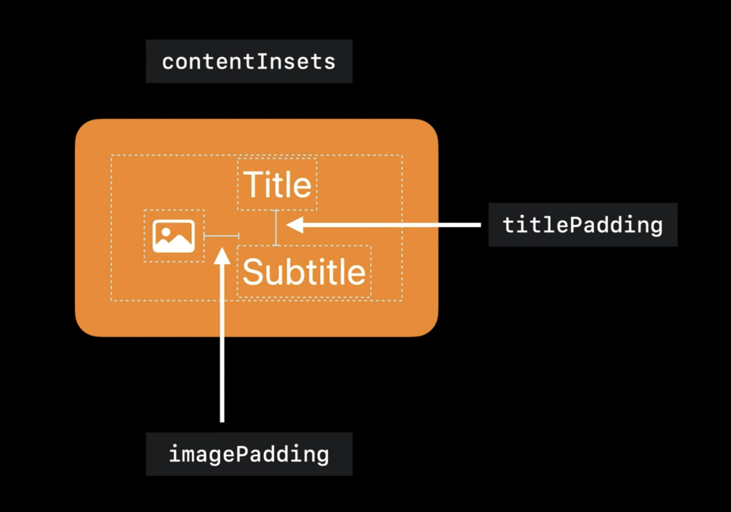 위의 그림에서 버튼 내부의 레이아웃 형태를 확인할 수 있다. Title과 Subtitle, 그리고 이미지 사이의 공간을 얼마큼 늘이고 줄여야 하는지 알 수 있다.