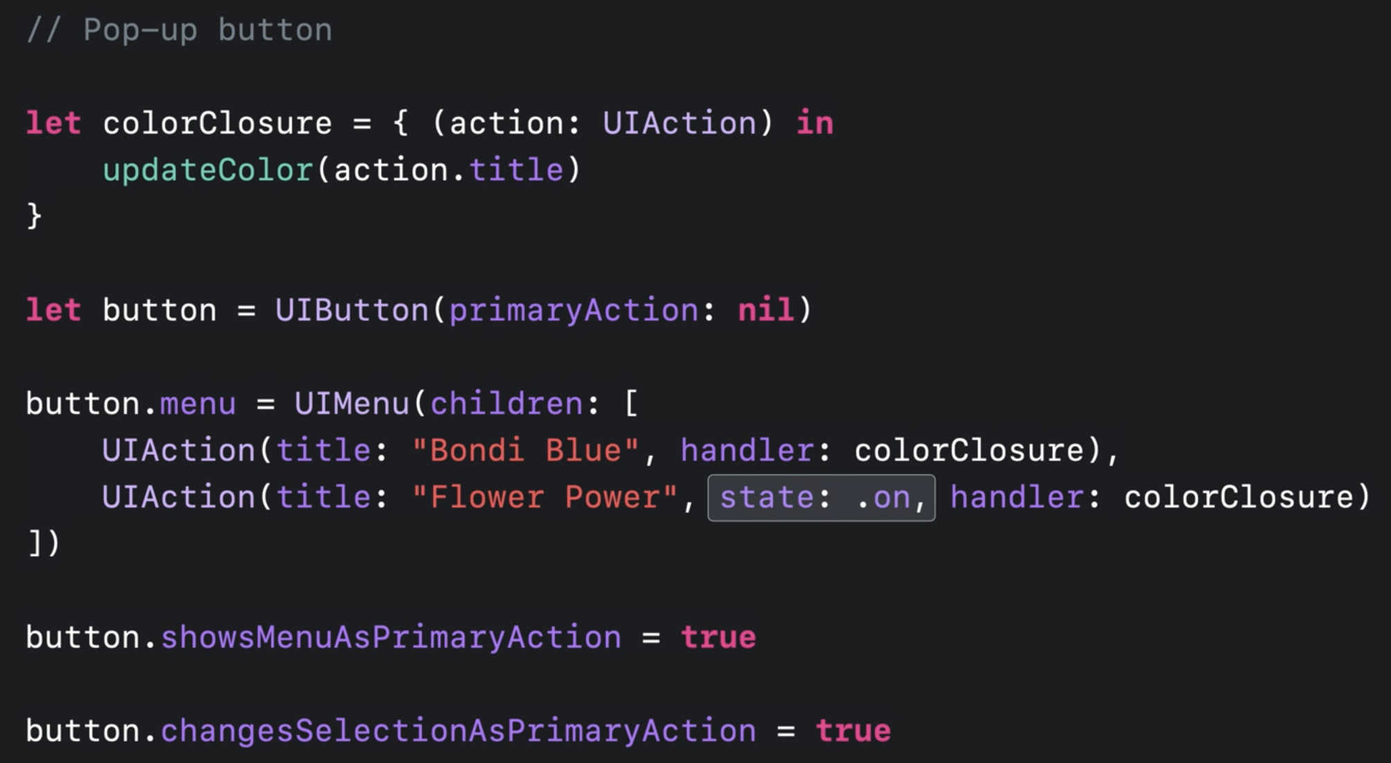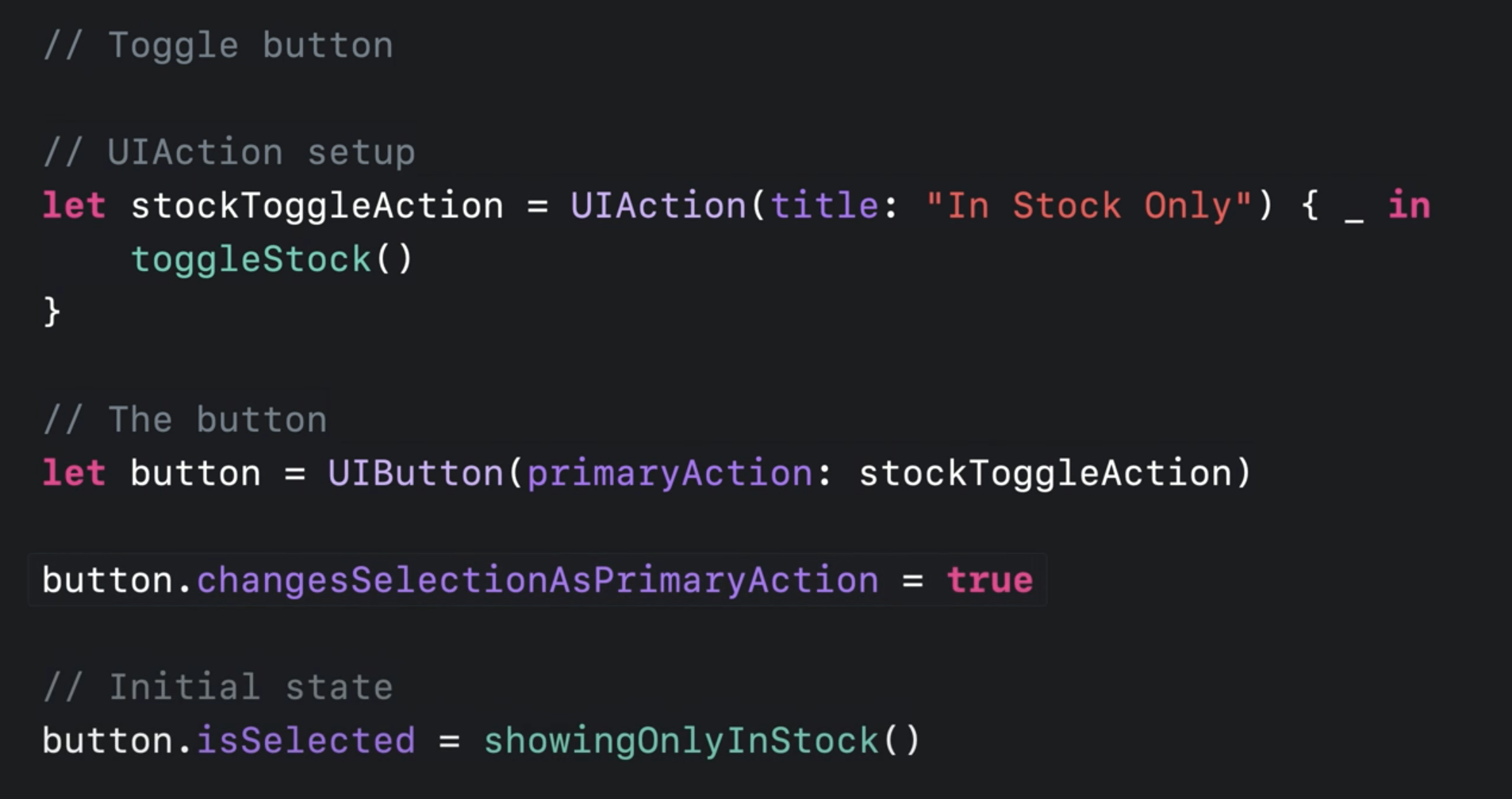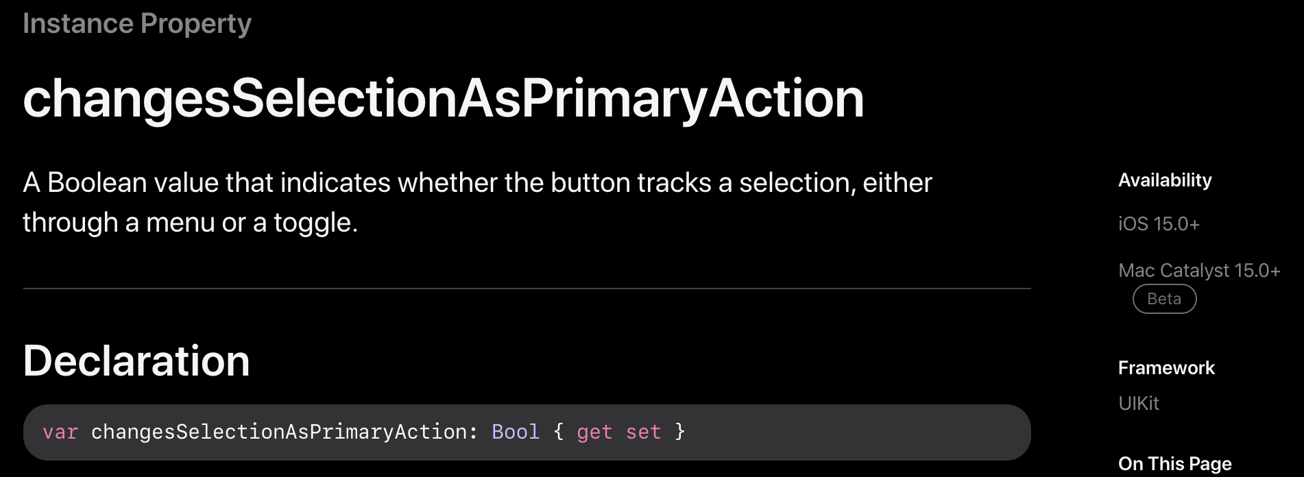 UIButton의 새로운 인스턴스 프로퍼티인 changesSelectionAsPrimaryAction으로 적용한다.
