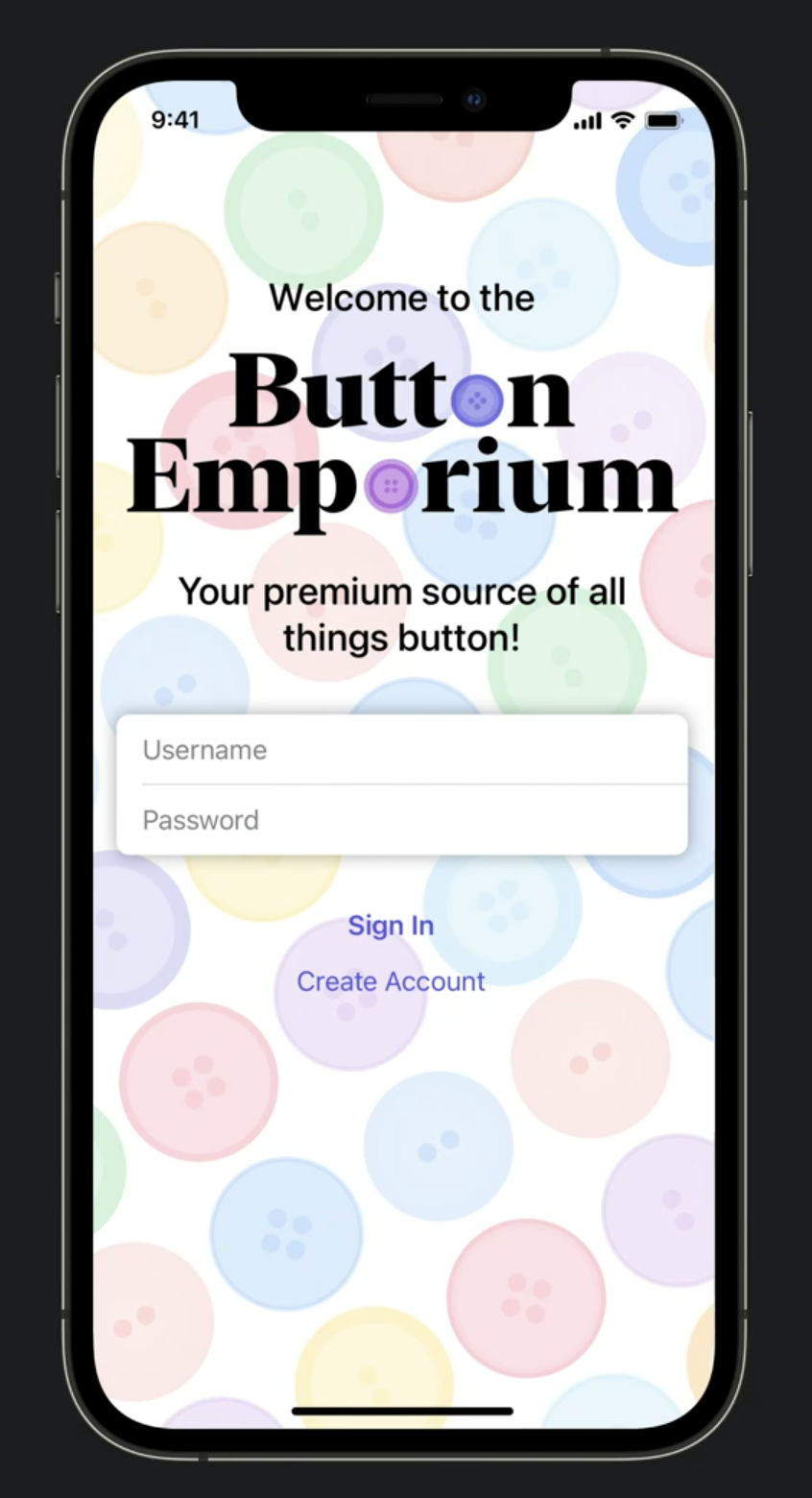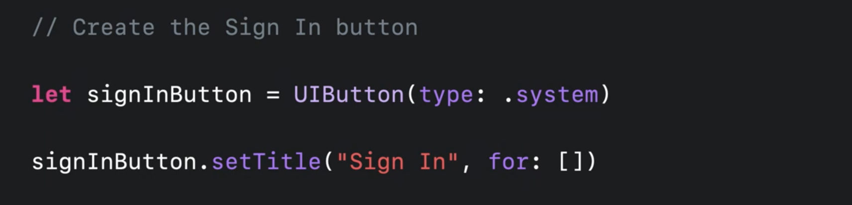 위 화면의 Sign In 버튼과 Create Account 버튼을 만드는 코드는 다음과 같다.
