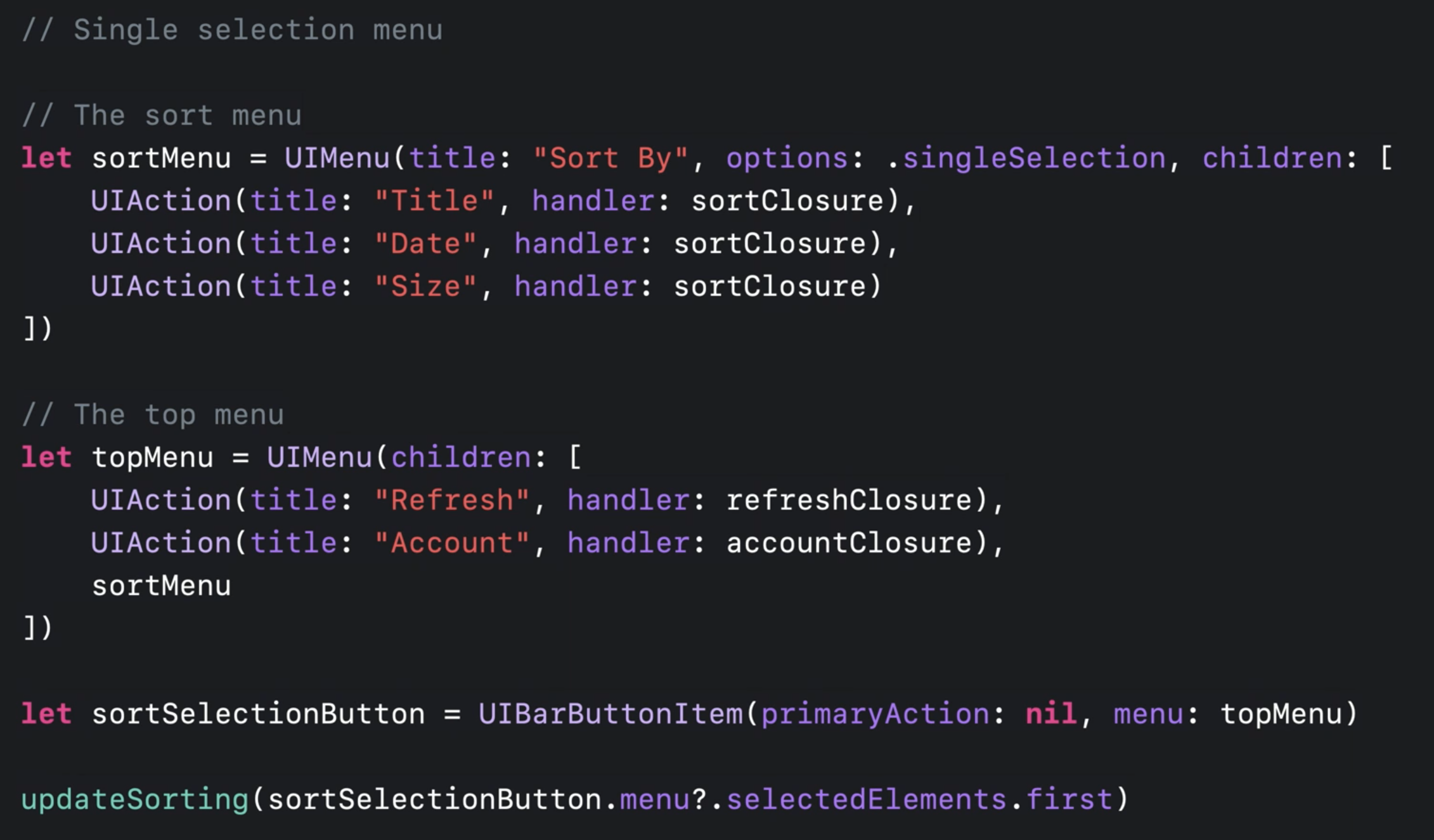 pop-up버튼의 예제들을 위에서 보았듯이, 많은 기능들이 UIMenu의 특징들로 구성되어 있다.