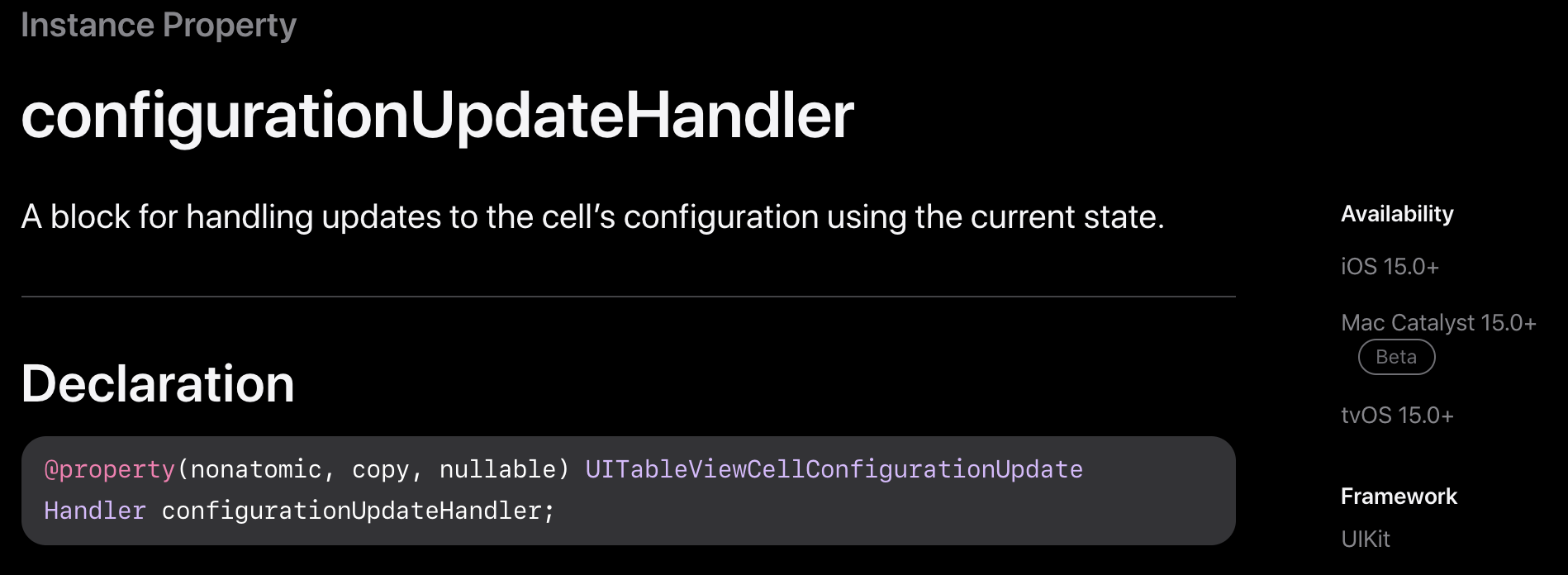 추가적으로, 버튼이 눌렸을 때 변하는 버튼을 만들기 위해 인스턴스 프로퍼티인 configurationUpdateHandler를 사용한다.