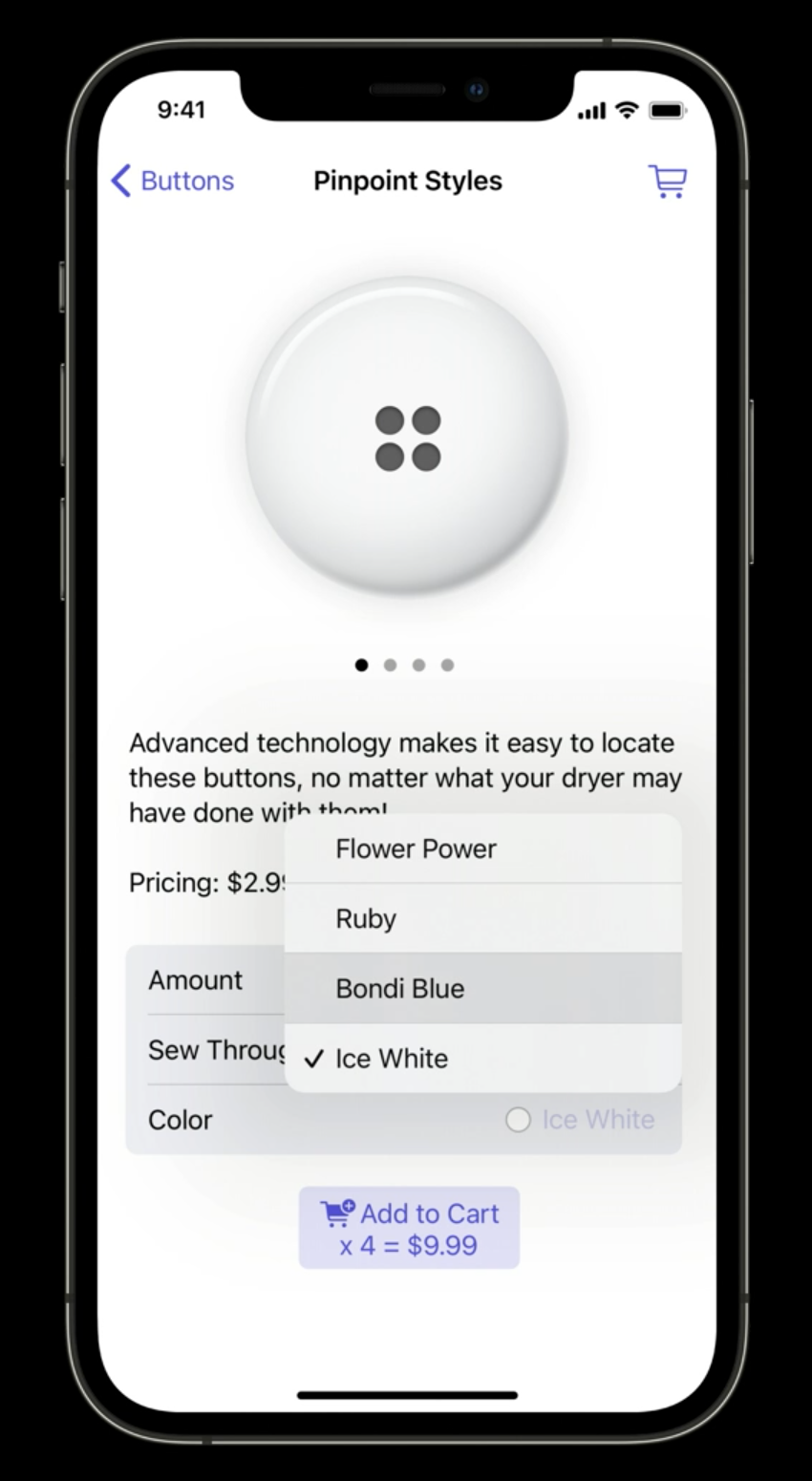 Add to Cart 버튼에 tinted 스타일을 적용했다.