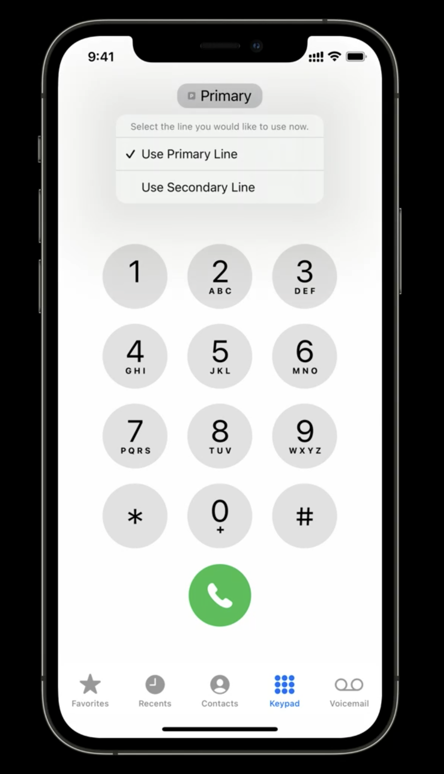 Phone앱에서는 SIMs를 선택하는 버튼으로 pop-up버튼을 사용하고 있다. 옵션을 하나 선택하면 버튼은 해당 옵션으로 업데이트된다.