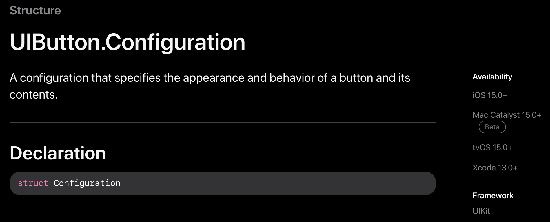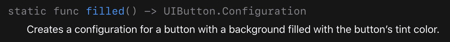 새롭게 등장한 UIButtonConfiguration이다. 버튼의 모습과 버튼 안의 내용을 개발자 입맛대로 바꿀 수 있다.