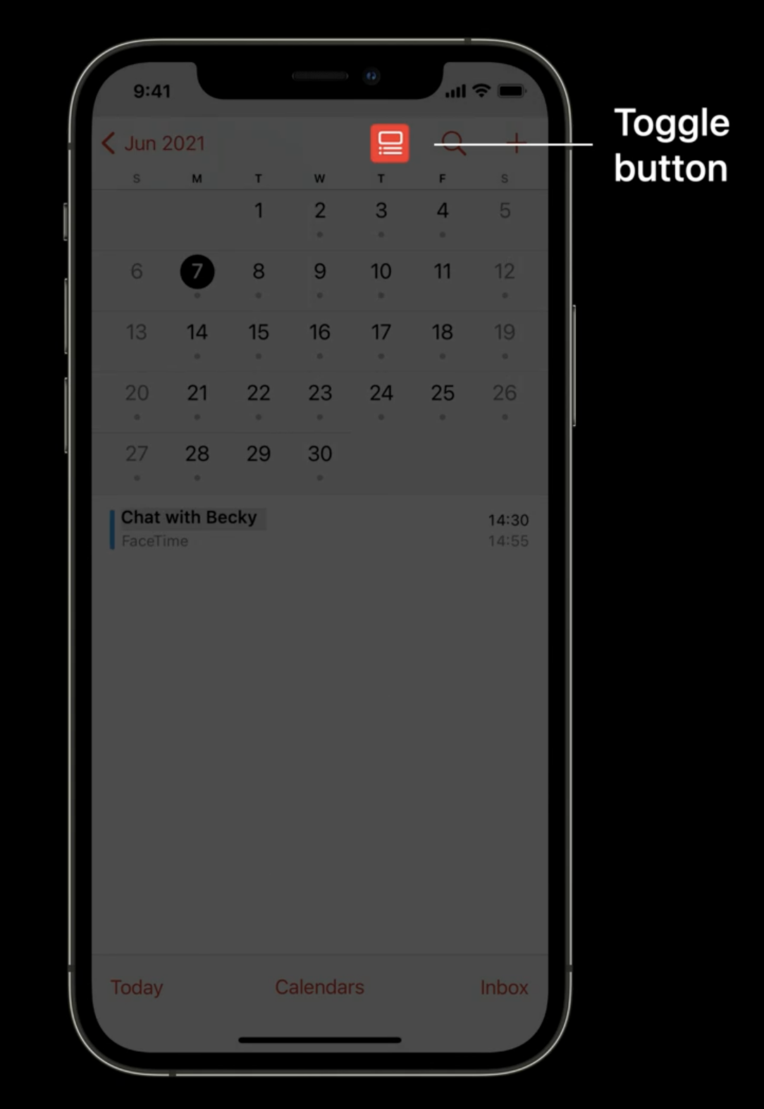 위 그림은 애플의 캘린더 앱이다. top bar에 있는 toggle버튼을 눌러 날짜의 세부사항을 끄고 킬 수 있다.