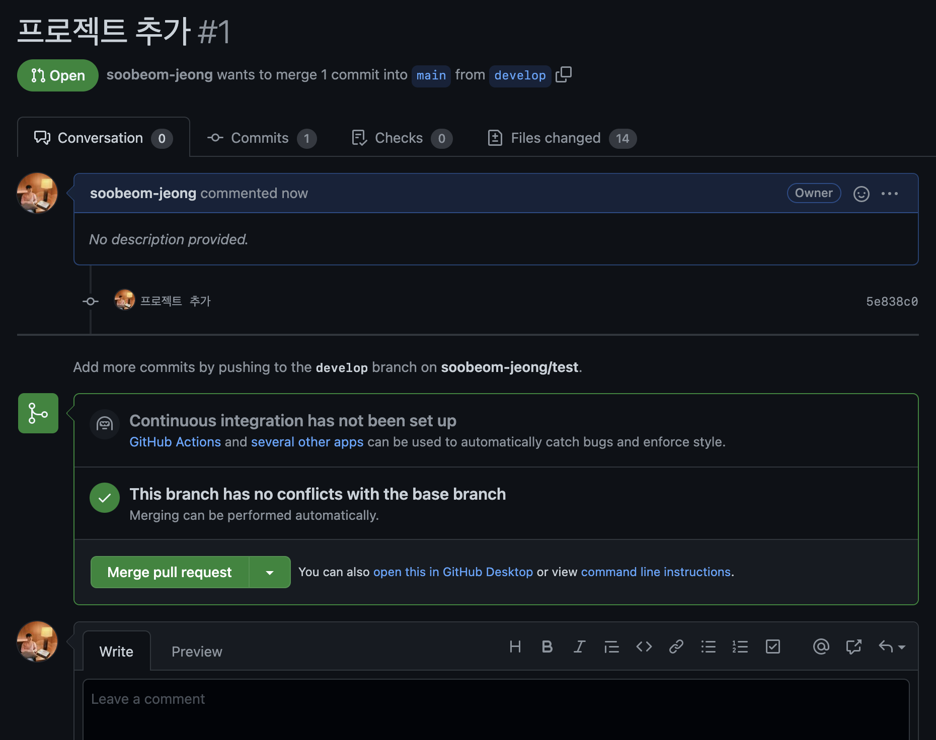 pr이 잘 보내졌음을 확인할 수 있습니다.