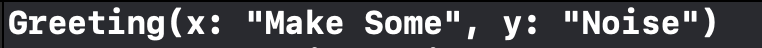 다음과 같이 Greeting 구조체를 만들고 프로퍼티를 출력하면