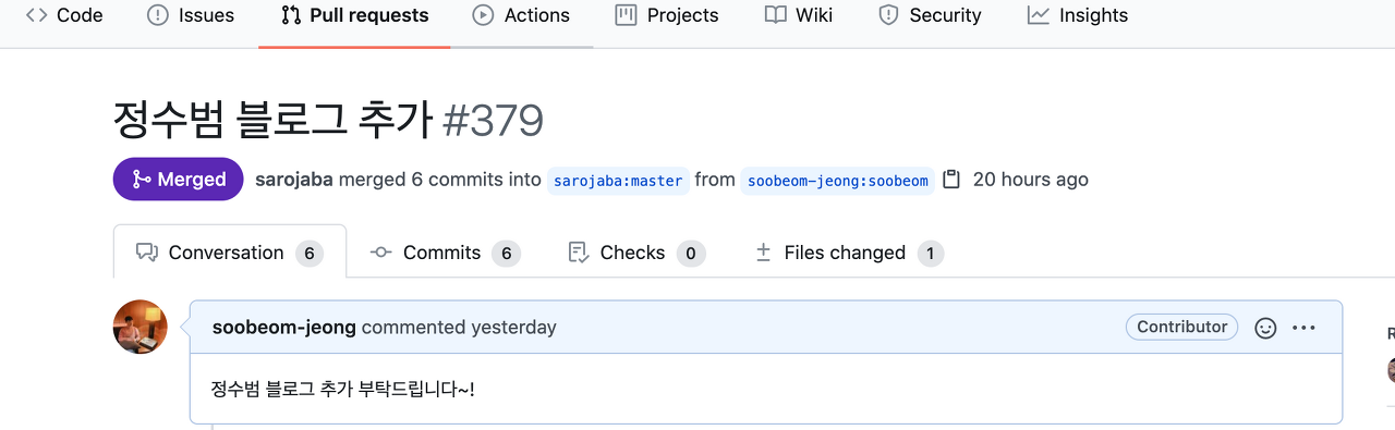 그리고 기다리시면 금방 sarojaba님이 merge를 하실겁니다😄